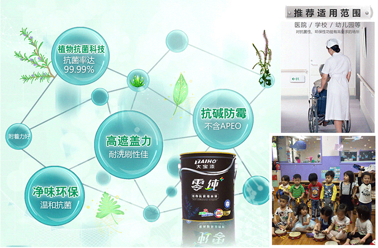 大寶始終將消費者的健康放在首位,將【植物抗菌技術】導入涂料中,對配方技術進行創新升級,并成功研發零純+植物抗菌墻面漆