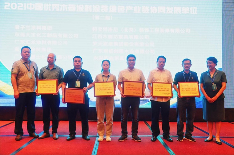 研討會現(xiàn)場,重點對“2021中國優(yōu)秀木器涂料涂裝綠色產(chǎn)業(yè)鏈協(xié)同發(fā)展單位”進(jìn)行了表彰與聯(lián)合授牌。大寶漆以優(yōu)秀的環(huán)保涂裝解決方案和創(chuàng)新的領(lǐng)先服務(wù)優(yōu)勢,致力于推動上下游產(chǎn)業(yè)鏈協(xié)同綠色發(fā)展,與江西木御坊家具有限公司保持深度合作,攜手推進(jìn)“協(xié)同發(fā)展、綠色制造”的成績獲得行業(yè)協(xié)會一致認(rèn)可,被分別授予該項榮譽(yù)獎牌,也是對大寶漆賦能環(huán)保、積極推動上下游產(chǎn)業(yè)鏈協(xié)同綠色發(fā)展的肯定。