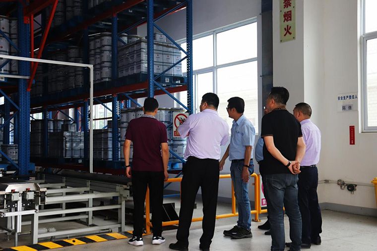 在鄭總的陪同下,成都商會(huì)一行先后參觀了形象展示區(qū)、自動(dòng)化立體倉(cāng)庫(kù)、生產(chǎn)車間、安全消防、油槽區(qū)、污水處理池設(shè)備、RTO治理設(shè)備等,接待人員詳細(xì)的介紹了各區(qū)域的運(yùn)作情況。