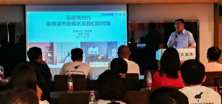 隨后由業(yè)三部東北區(qū)域業(yè)務(wù)課長(zhǎng)黃河玉向經(jīng)銷(xiāo)商系統(tǒng)而專業(yè)地介紹了近期公司上市的各渠道新產(chǎn)品。從零售渠道新推出的大寶抗病毒全效墻面漆零純+植物抗菌墻面漆,到專業(yè)領(lǐng)域的絲絨蛋殼光產(chǎn)品、陽(yáng)臺(tái)廚衛(wèi)專用漆、工業(yè)風(fēng)裝修所需的炫黑涂料;從工程渠道的仿石漆產(chǎn)品、地坪漆到工程領(lǐng)域新關(guān)注的無(wú)機(jī)涂料產(chǎn)品系列、大健康產(chǎn)品系列再到工業(yè)領(lǐng)域的輕防腐系列產(chǎn)品;從家裝市場(chǎng)輔助材料的防水、墻地固、瓷磚背膠系列到工程翻新和維修渠道的滲透型界面劑、大寶液體卷材等,黃課長(zhǎng)結(jié)合每種產(chǎn)品的上市背景、物性介紹、產(chǎn)品認(rèn)證和檢驗(yàn)報(bào)告等內(nèi)容向經(jīng)銷(xiāo)商推介每種產(chǎn)品的市場(chǎng)推廣方向、市場(chǎng)銷(xiāo)售機(jī)會(huì)及施工注意事項(xiàng)。