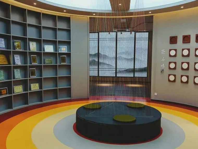 在隔出來(lái)的弧形展廳,一面墻展示著企業(yè)獲獎(jiǎng)榮譽(yù)證書(shū),一面墻是客戶的簽名展示區(qū)。