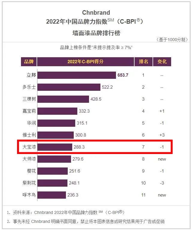 權(quán)威發(fā)布|大寶漆再次上榜2022年中國品牌力指數(shù)排行