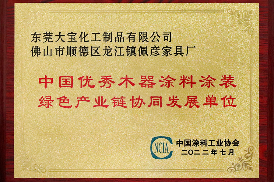 東莞大寶獲中國優(yōu)秀木器涂料涂裝綠色產(chǎn)業(yè)鏈協(xié)同發(fā)展單位