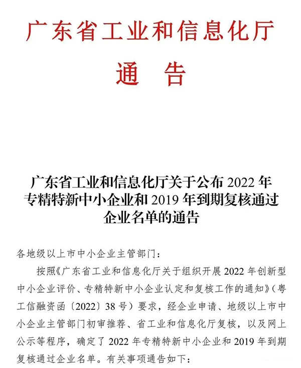 近日,廣東省工業(yè)和信息化廳公布了《關(guān)于公布2022年專精特新中小企業(yè)和2019年到期復(fù)核通過(guò)企業(yè)名單的通知》,東莞大寶化工制品有限公司順利通過(guò)各級(jí)部門的審核,被認(rèn)定為2022年度廣東省“專精特新”中小企業(yè)。