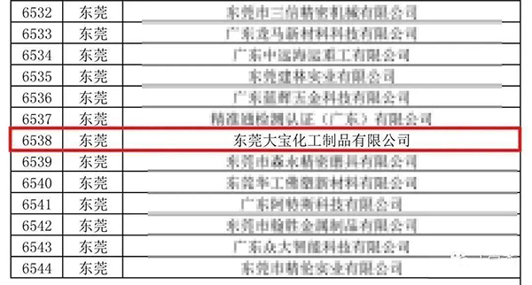 喜訊│東莞大寶化工通過(guò)廣東省“專精特新”企業(yè)認(rèn)定!