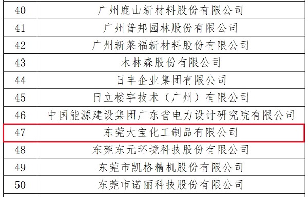 國家知識產(chǎn)權(quán)局公布2023年度國家知識產(chǎn)權(quán)優(yōu)勢企業(yè)和示范企業(yè)評定結(jié)果,東莞大寶化工獲評“國家知識產(chǎn)權(quán)示范企業(yè)”。