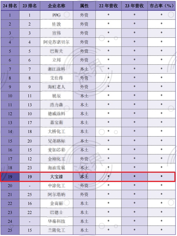 大寶漆蟬聯中國工業涂料20強,連續2年上榜!