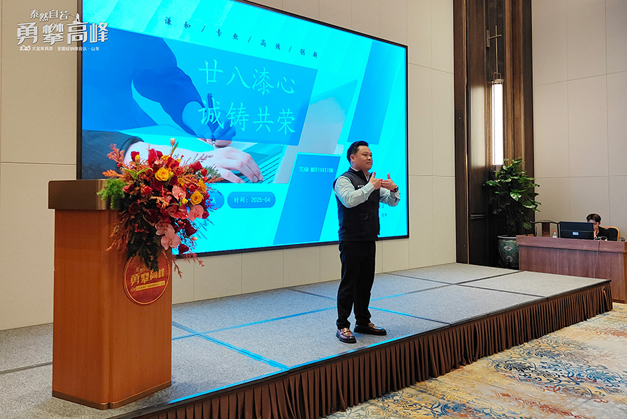 經銷事業部副總經理葉子琛在開場致辭中指出,當下市場如同風云驟變、波濤洶涌,唯有保持“泰然自若”的心態,方能穩中求進、應變致勝。“勇攀高峰”不僅是一句口號,更是一種從容進取、不懼挑戰的精神指引。