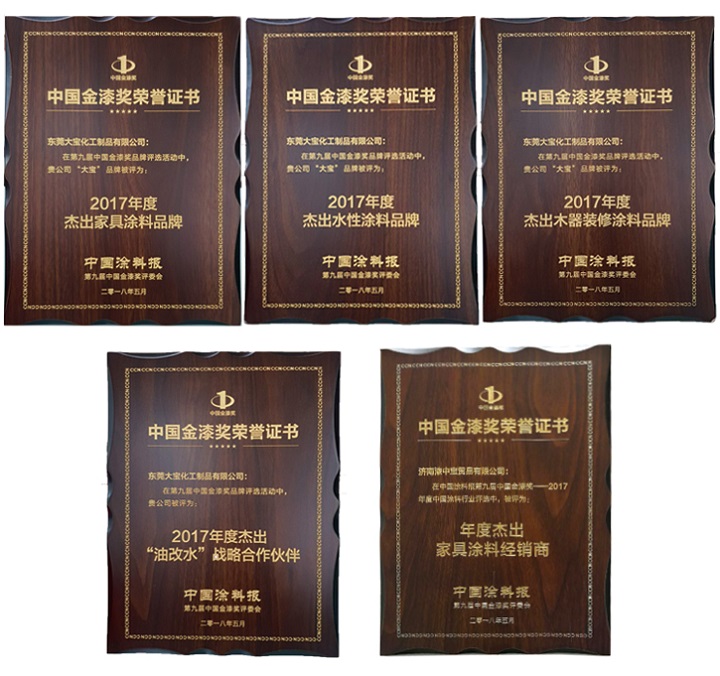 載譽(yù)而歸,大寶漆攬獲金漆獎(jiǎng)五項(xiàng)大獎(jiǎng)