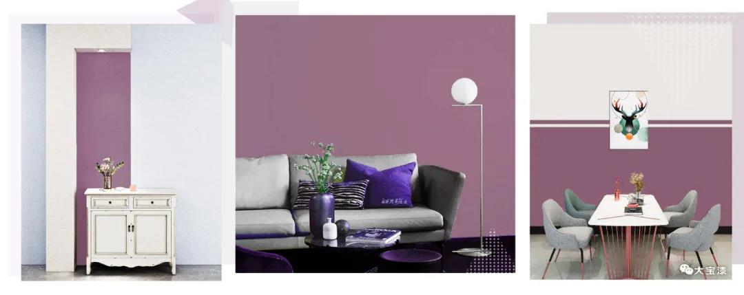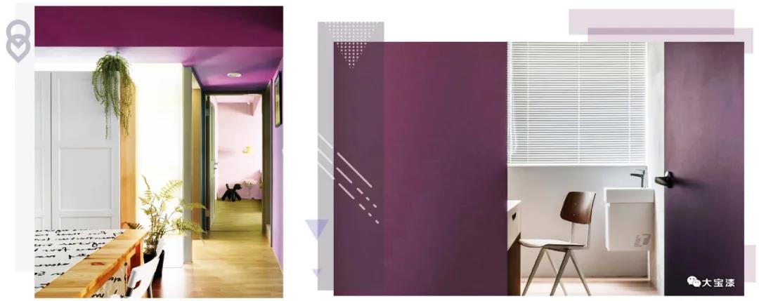 黑加侖紫是一種色澤比較濃郁又帶有粉調(diào)的紫色,可以將紫色的高雅與粉色的溫柔融合得很完美。黑加侖紫是安靜而浪漫的,深沉而前衛(wèi),帶有一種復(fù)古而優(yōu)雅的氛圍。雖然在家居應(yīng)用中并不常見(jiàn),且在室內(nèi)空間內(nèi),大面積使用黑加侖紫其實(shí)不大好把控,需要把握好搭配色調(diào)和整體比例,可以通過(guò)強(qiáng)烈的色彩碰撞帶來(lái)驚艷的效果,它也可以搭配高檔中性的灰色、米黃色、黃色等色彩,適度增強(qiáng)空間的亮度。